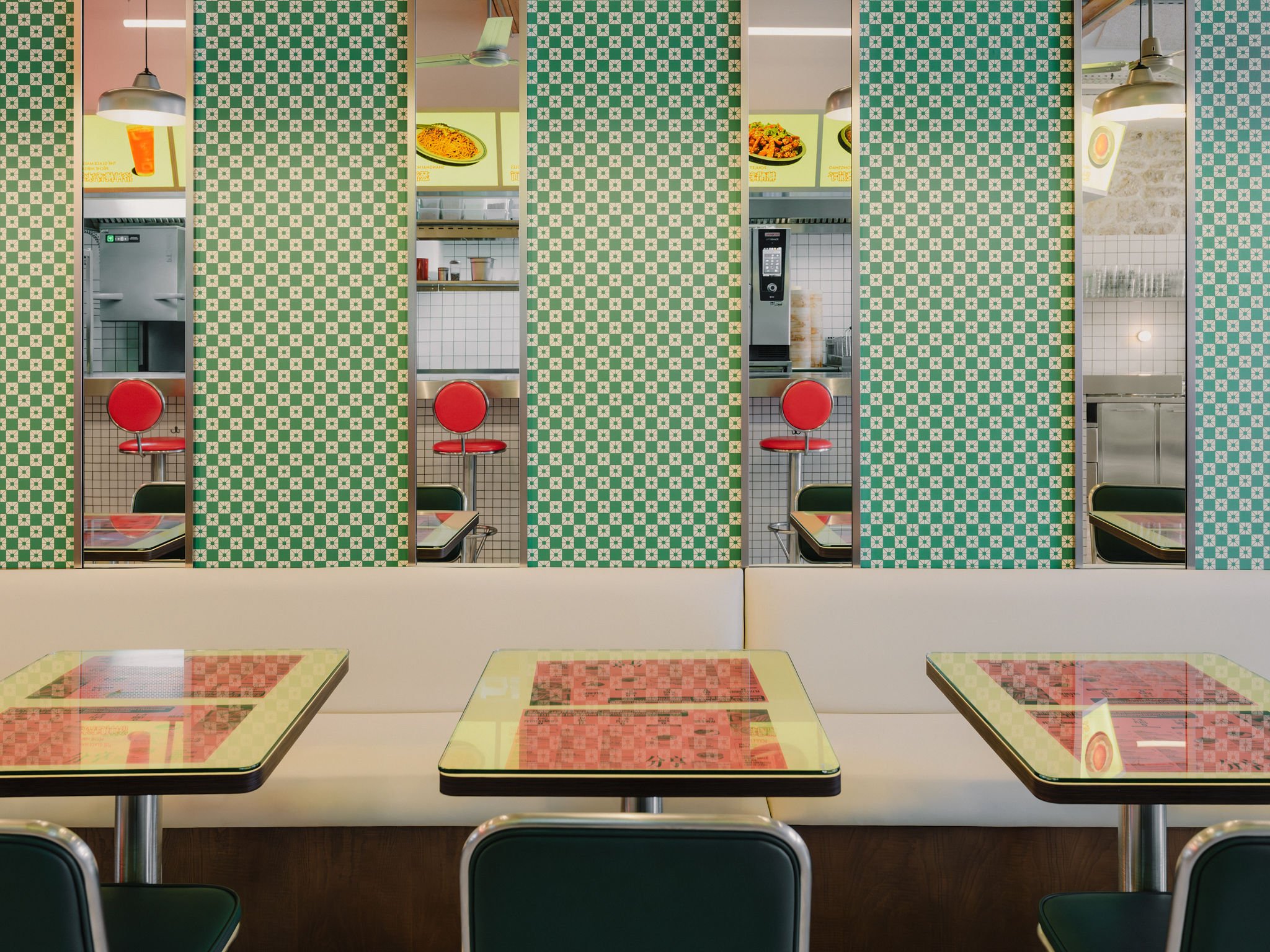 Warm neutrals, cream banquettes and graphic details, layered lighting and bold accents throughout the space, with subtle nods to contemporary Chinese culture. Petit Bao Bercy is the next evolution of the Petit Bao concept.